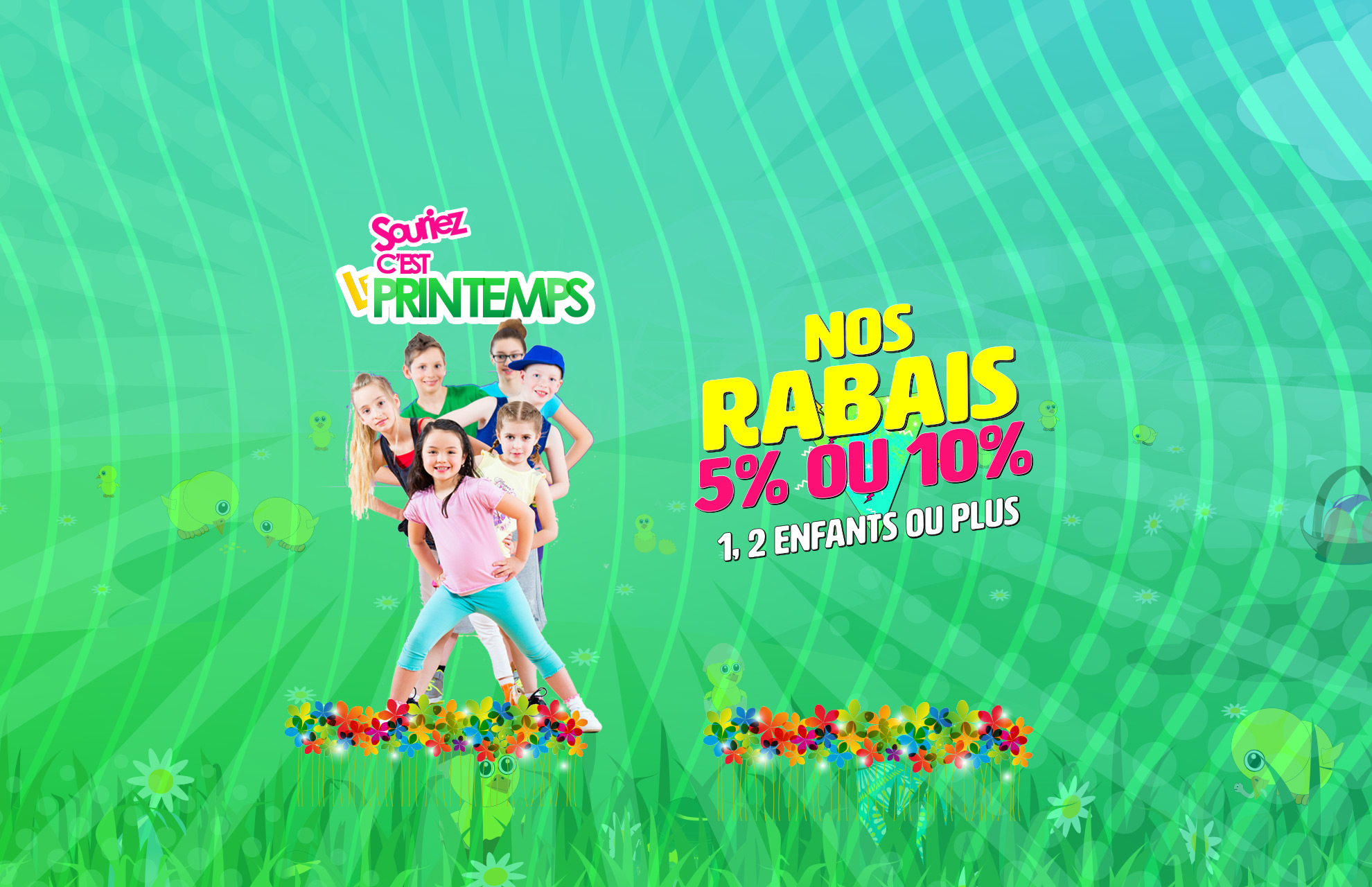 5% À partir du 15 Mars - Ce rabais concernent les inscriptions de 2 enfants ou plus.